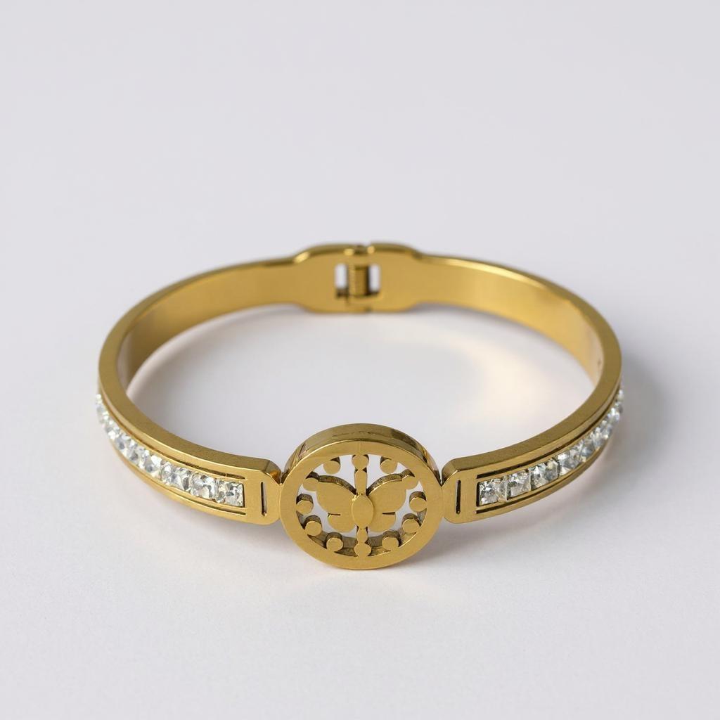 Delicate, elegant, and full of charm – the Golden Butterfly Crystal Bangle is designed to make every moment shine. Featuring a beautifully crafted butterfly centerpiece encased in a circular frame, paired with sparkling crystal accents along the band, this piece captures the essence of freedom and grace.