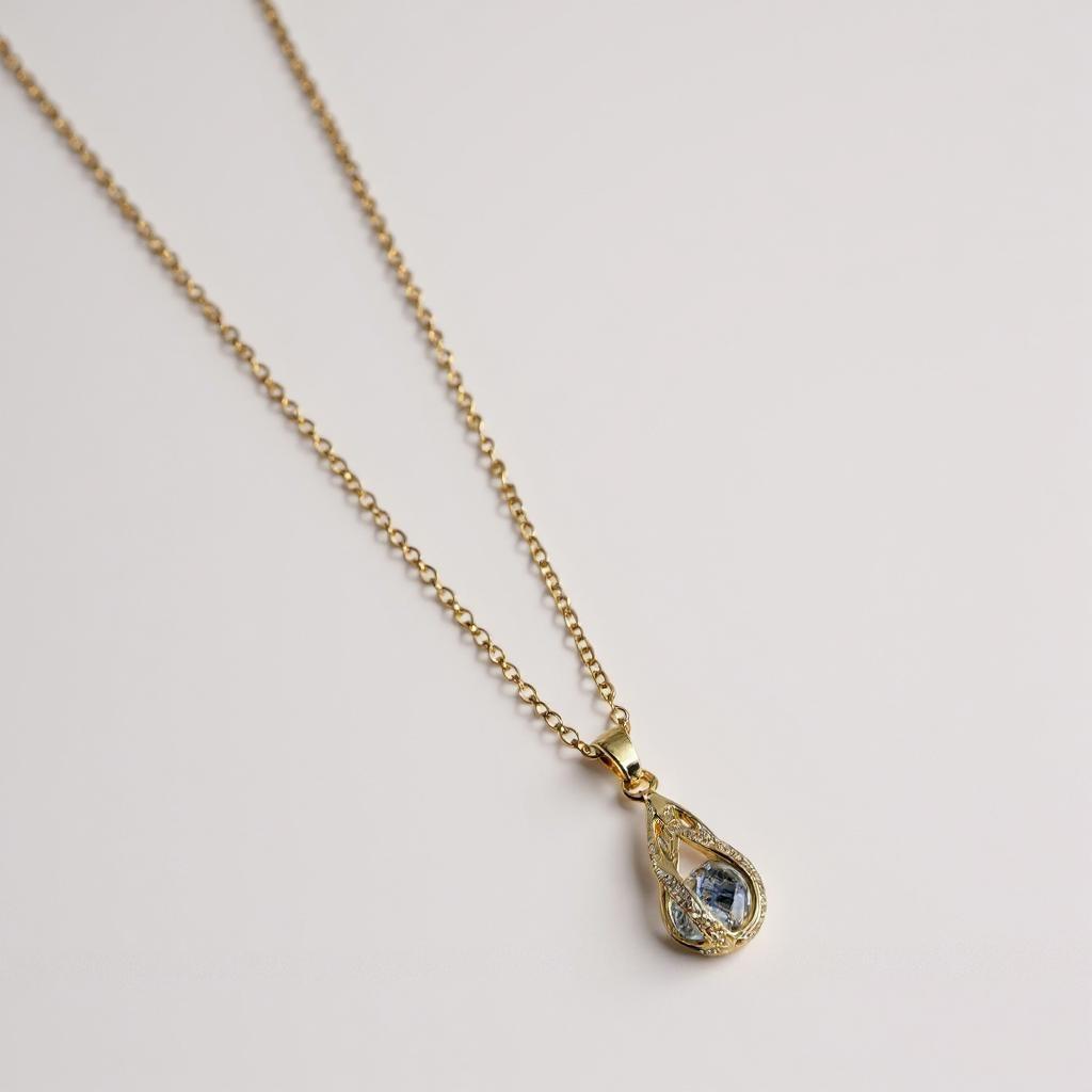 Elevate your elegance with the Golden Teardrop Blue Crystal Pendant Necklace, a stunning piece designed to capture both light and admiration. The teardrop pendant features a radiant blue crystal framed in a delicate gold setting with sparkling accents, creating a timeless balance of sophistication and charm.